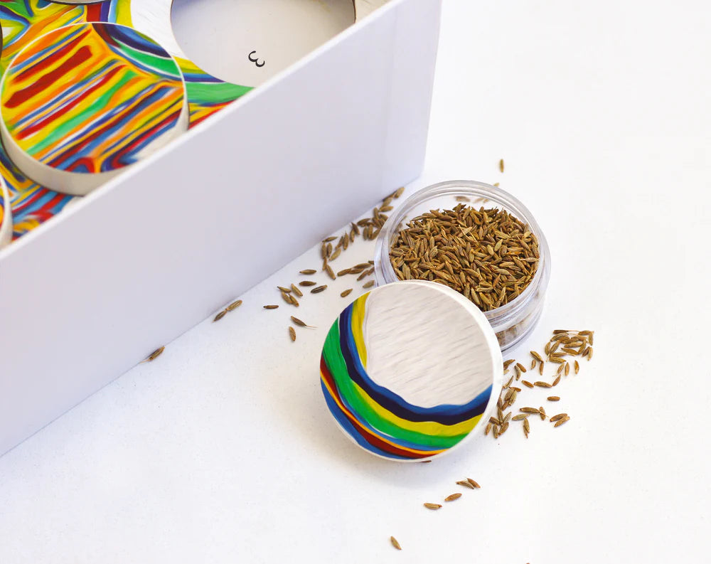 - Ancient Herbs and Spices: Organic Black Mustard Seeds, Organic Cumin Powder, Organic Coriander Powder, Garlic Flakes, Ginger Powder, Organic Turmeric Powder, Organic Hing Powder, Bay Leaves, Organic Himalayan Pink Salt, Black Kokum.